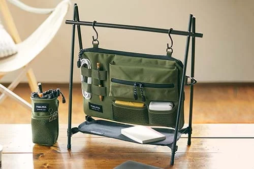 ハンギングラックと同時に発売されるマルチケースは、デスクワークで使用する様々なツールが整理整頓されて収納できるデザインとなっています。