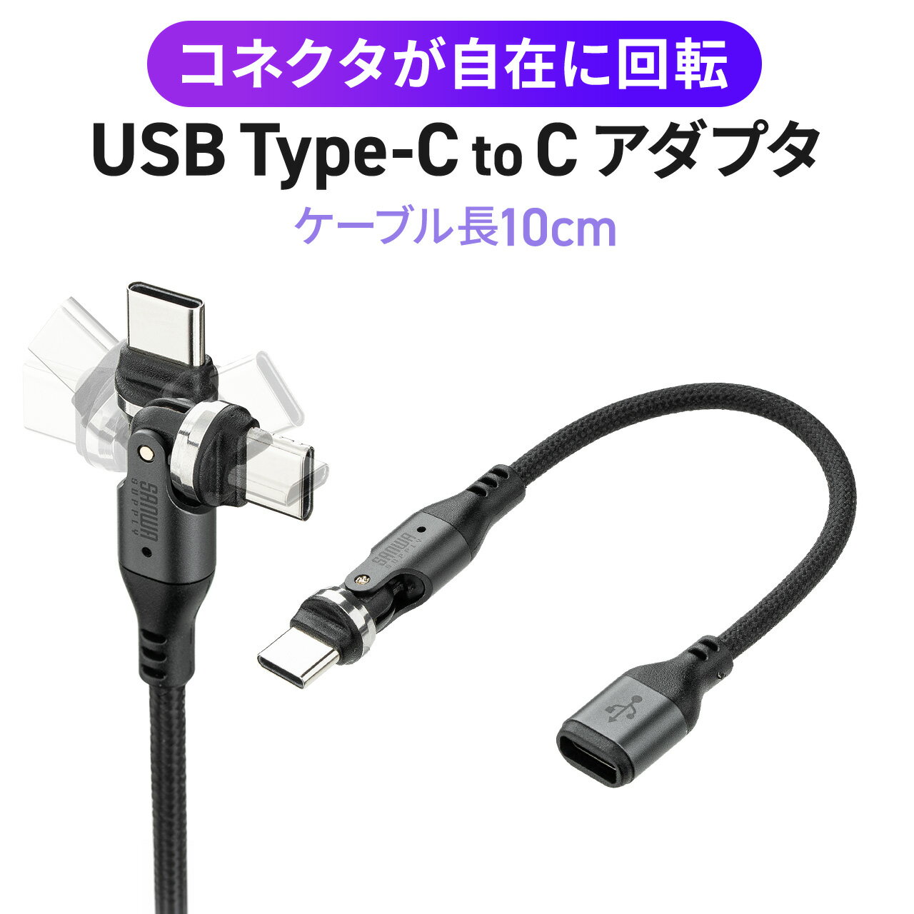 こちらは『USB Type-C(オス)からUSB Type-C(メス)』への変換タイプです。主な役割は、今お使いのType-Cケーブルの先端を「回転式」にアップデートすることにあります。