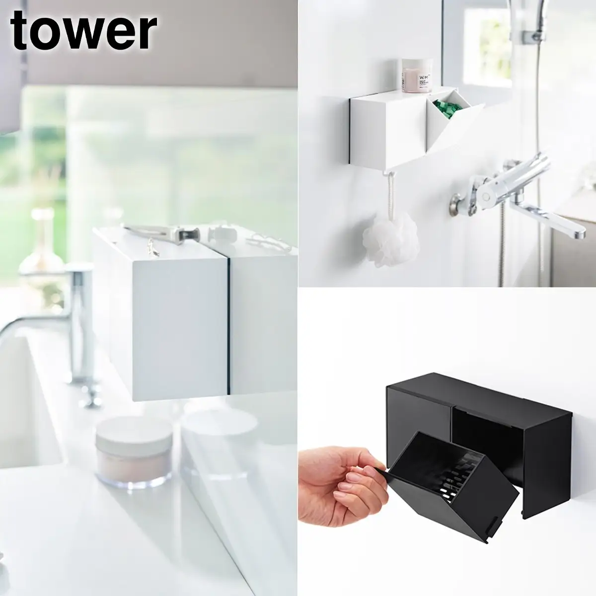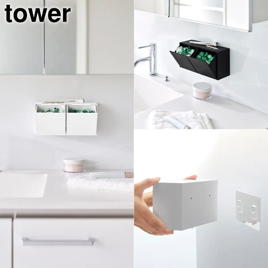 今回は、整理整頓の救世主である山崎実業のタワーシリーズから登場した、画期的なアイテムをご紹介します。その名も『マグネット洗顔パウダーストッカー&ダストボックス タワー』と『フィルムフック洗顔パウダーストッカー&ダストボックス タワー』です。