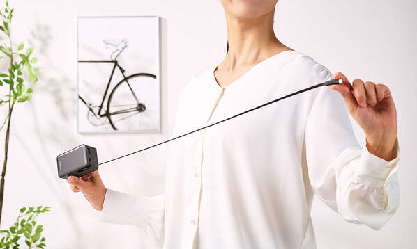 最大の特徴は、なんといっても本体に埋め込まれた巻き取り式ケーブル。