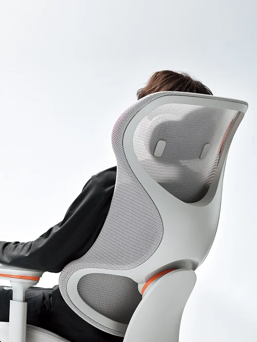メッシュタイプの椅子でよくある悩みが、左右の硬いフレームが肩や腕に当たって痛いということ。『ingCloud』はこの問題を、背もたれ左右のフレームを完全になくすという『大胆な発想』で解決しました。