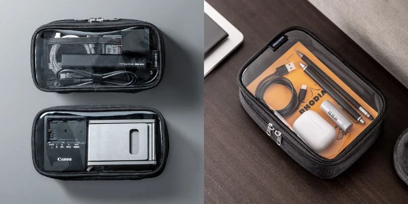 また、「ガジェットだけでなく、出張用の洗面道具入れとして使っています。中身が見えるので空港の検査でもスムーズだし、ビニール製なので多少濡れても平気なのが便利!」という、トラベルシーンでの活用も目立ちます。
