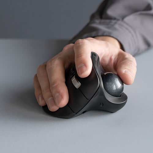 朝、デスクに座り、そっと右手をトラックボールに置きます。手首を捻ることなく、まるで握手をするようにリラックスした状態で仕事がスタート。Excelの膨大なデータも、ホイールを軽く弾くだけで目的の行へ。横に長い資料も、親指を離すことなくスイスイと移動できます。